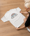 This design features a gentle pastel rainbow resting on soft white clouds, with the simple yet powerful message “CHOOSE KINDNESS” placed across the center. The muted color palette creates a calm, reassuring atmosphere, while the clean typography keeps the message clear and intentional.