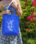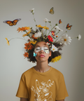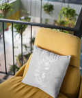 Featuring an elegant line-art illustration of intertwined hands blooming with delicate flowers, this design symbolizes connection, care, and growing together. The flowing white lines stand out strikingly against the black background, creating a calm yet powerful contrast. Floral elements woven through the hands add a sense of tenderness, balance, and quiet strength.