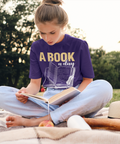 Featuring a hand-drawn open book illustration paired with the bold phrase “A BOOK A DAY KEEPS REALITY AWAY”, this design celebrates reading as an escape, a refuge, and a form of everyday rebellion against noise and chaos. The sketch-style book adds a timeless, literary feel, while the bold typography grounds the message with confidence.