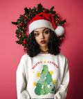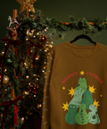 Featuring a stack of charming green kitties shaped like a Christmas tree, surrounded by glowing stars, this design delivers the perfect blend of festive cheer and cat-lover humor.