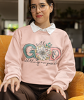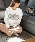 Featuring oversized pastel “GOD” lettering paired with a delicately illustrated floral centerpiece, this minimalist version strips the message down to its essence. The subtle, low-contrast script text fades gently into the background, allowing the central symbol of faith to take focus without visual noise.