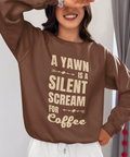☕😴 “A Yawn Is a Silent Scream for Coffee” DTF Transfer | Funny Coffee Lover Design