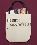 โ˜•๐Ÿ’ป if (!โ˜•) { cup.refill(); } โ€“ Programmer Humor Black Font DTF Transfer
