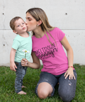 Typography-driven and clean in style, the design lets the message take center stage without unnecessary distractions. It’s lighthearted but strong, making it a perfect everyday statement for moms who wear their role with humor and pride.