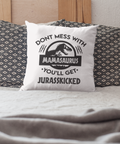Featuring a powerful dinosaur silhouette framed in a classic badge style, āDonāt mess with Mamasaurusā is made for moms who protect fiercely and love endlessly. The playful yet intimidating dinosaur theme adds humor, strength, and attitude, while the bold typography delivers the message loud and clear.