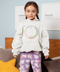 accented with a smiling rainbow-pencil arc, soft pastel colors, and cute classroom details. It’s bright, friendly, and instantly comforting — perfect for little ones stepping into a brand-new chapter.