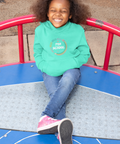The rounded letterforms and gentle color palette create a happy, welcoming feel without overwhelming the design, making it ideal for preschool-aged kids and early learners.
