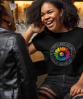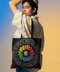 At the center, a vibrant rainbow sunflower symbolizes diversity, growth, and shared humanity. Each petal represents a different identity, yet all are part of the same whole—rooted in understanding, compassion, and peace. The peace symbols reinforce the core message: empathy over anger, awareness over judgment.