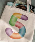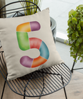 This birthday-themed DTF transfer features the bold number 5, designed in a vibrant patchwork fabric style with stitched segment details and dimensional color blocking.